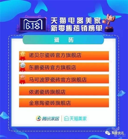 2017年6月18日天貓瓷磚熱銷榜單