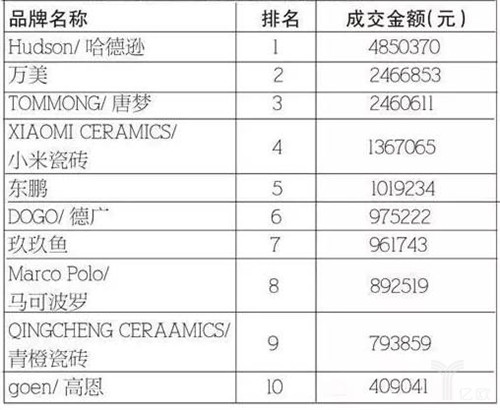 2015年天貓雙十一瓷磚類目排名