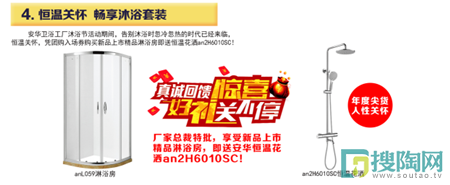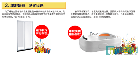 本次清涼沐浴節(jié),八大好禮送不停。積贊賺百元紅包;憑團(tuán)購入場券買精品淋浴房即送恒溫花灑;訂單滿3千即可抽紅包贏好禮等史無前例大力度優(yōu)惠來勢兇猛,把更多的利益讓給廣大業(yè)主,勢必掀起一場盛大的搶購風(fēng)暴!