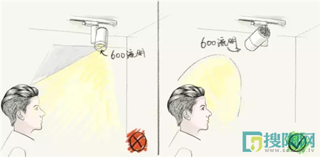▲ 軌道燈轉(zhuǎn)向墻壁,經(jīng)墻壁反射燈光到人眼范圍,柔和舒適,直接光變成了間接光。