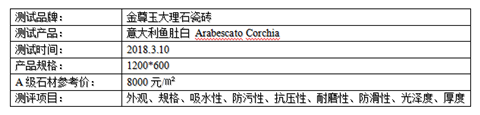 測評結果:顯視新品意大利大理石魚肚白的光澤度為113.8,測量得出質量評“優”。