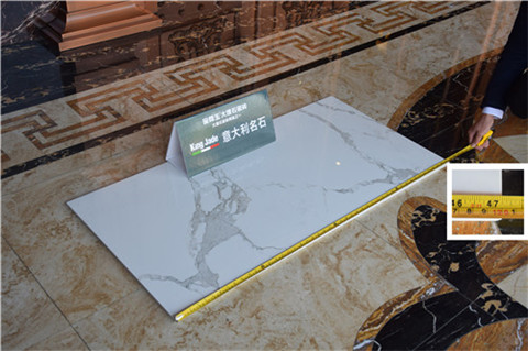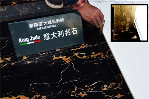 讓大家先一睹一下新品意大利名石魚肚白的厚度,測試結果:厚度為±19MM達標通過。