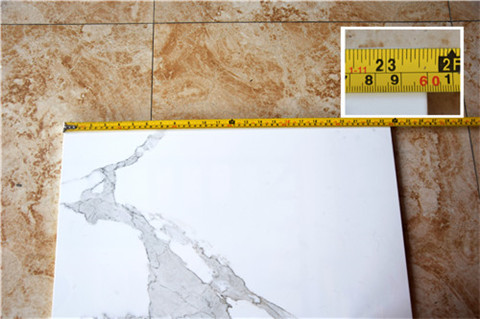 瓷磚邊長的精確度越高,鋪貼后的效果越好,買優質瓷磚不但容易施工,而且能節約工時和輔料。用卷尺測量每片瓷磚的大小周邊有無差異,精確度高的為上品。測試規格為1200*600的瓷磚產品,測試結果得出規格準確無誤。