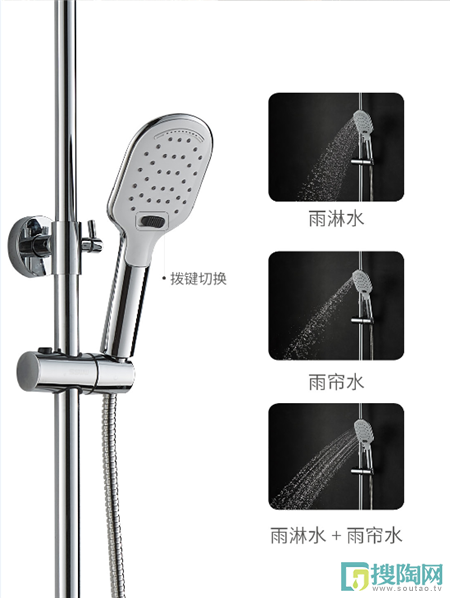 為了緩解一天疲憊的身體,除了用拉伸來放松肌肉外,還可以用浪鯨衛浴的淋浴花灑來進行放松按摩,浪鯨衛浴的花灑配置有采用三功能撥鍵式切換手持花灑,三種噴射水流帶給你不同的沐浴體驗。雨淋水,水流清爽柔和,帶給你們天然雨淋般的沐浴享受;雨簾水模式,水流最為強勁,雨淋水+雨簾水,水流急湍,可以起到按摩放松的作用。三種不同的噴水方式任君挑選。為你帶來不一樣的spa體驗。
