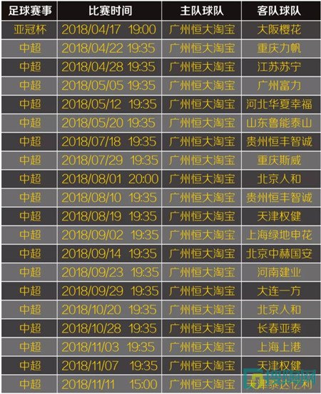 備注:亞冠為小組賽,后期比賽安排視實際情況實時更新。