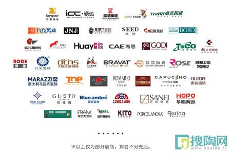 國內知名參展商代表有:東鵬、馬可波羅、諾貝爾、金意陶、嘉俊、博德、格仕陶、強輝、歐文萊、ICC、興輝、白兔、惠達、羅馬、亞細亞、BOBO、依諾、大唐合盛等國內特色企業。