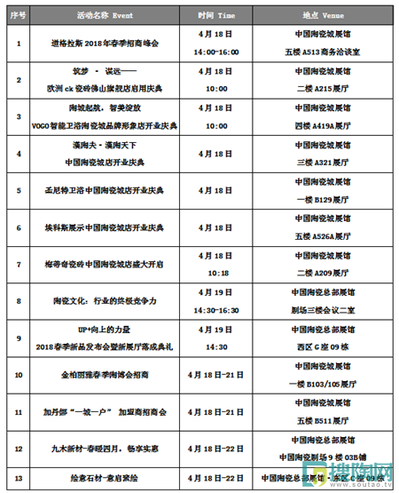 據了解,截至目前組委會收到的將在展會期間舉辦大型活動的企業就有三十多家,連同主辦活動、中小型活動,預計在展會期間開展的活動將不低于50場,囊括了儀式、營銷、新品發布、設計、地產、新商業、文化、國際等主題,匯聚了近百位營銷界、設計界以及地產界的大咖,從不同的維度與現場觀眾共襄陶瓷產業相關聯的發展方向。每場活動都各具特色,每場活動都有屬于自己的freestyle。