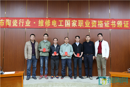 2018年3月21日下午,由佛山市陶瓷行業協會、佛山市禪城區愷睿職業培訓學校共同舉辦的首次維修電工國家職業資格證書頒證儀式在中國陶瓷城五樓會議室舉行。蒙娜麗莎集團員工林永發、龔森賢、黃裘忠、覃日新等13位學員獲得維修電工高級證書。
