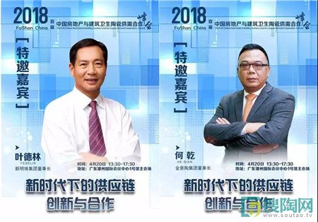 2018首屆中國房地產與建筑衛生陶瓷供需合作峰會是行業首次大規模產業鏈供需合作峰會,這是資源整合的大會,也是新時代產業鏈創新合作的大會,更是全裝修時代巨頭握手的大會。屆時,新明珠集團董事長葉德林、金意陶集團董事長何乾、蒙娜麗莎新型材料集團董事張旗康、九牧廚衛執行總裁林友色等多位陶業大佬將與全國知名房地產大咖出席供需合作高峰對話,規格之高行內少見。