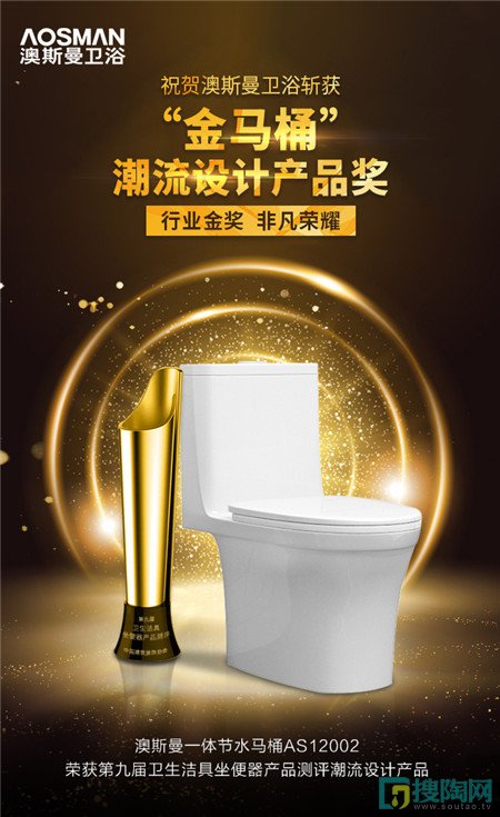 澳斯曼衛浴產品一舉攬獲包括金馬桶在內的五項權威大獎,包括: