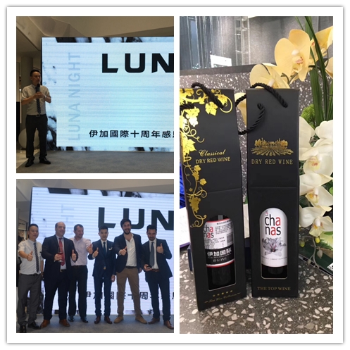 2018年4月18日晚上,“LUNA之夜--伊加國際十周年感恩答謝盛宴”在伊加國際現代極簡概念館隆重舉行,當天晚上伊加國際首席執行官、董事總經理朱偉峰先生、伊加國際總經理助理、市場總監朱國平先生、伊加國際商學院院長梁紹棟先生、伊加國際紅酒事業部總經理梁順漢先生、伊加國際全體員工、全體歐洲廠商代表戰略伙伴們及經銷商伙伴們、媒體朋友們齊聚一堂,共襄盛典,共同見證了伊加國際十年的發展歷程和品牌規劃。