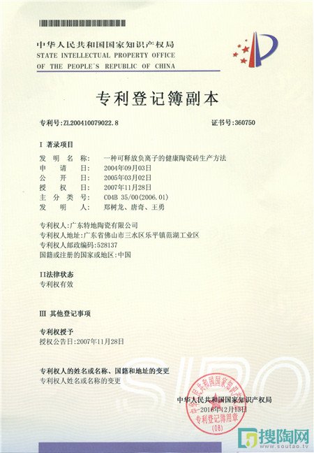 是否能提供負離子瓷磚的發明專利證書,并且在國家相關權威網站查證,這個是非常重要的一個考察舉措。