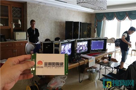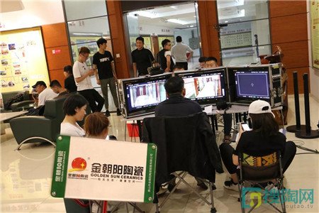 主演王雷、制片人敦淇和導演余丁在新明珠陶瓷集團拍攝現場