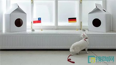 工作人員在兩個比拼隊伍的國旗旁放置了食盆,