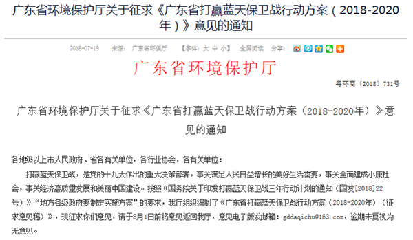 2018年7月19日,廣東省環保廳發布的《廣東省打贏藍天保衛戰行動方案(2018-2020年)(征求意見稿)》,該方案用“清潔排放治理”替代了“煤改氣”的說法,且要求包括佛山、清遠、肇慶、江門等在內的大部分城市的完成時間為2020年,而河源、云浮等地的改造完成時間為“逐步推進”。