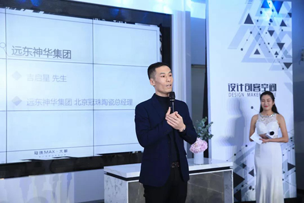 活動伊始,親臨現場的嘉賓領導為活動致辭。吉啟星表示,冠珠陶瓷能獲得今天的成績離不開現場各位嘉賓長期的支持,并對到場嘉賓表示感謝。同時,他希望設計師未來能夠繼續支持冠珠陶瓷,并對冠珠max大板提出寶貴意見。