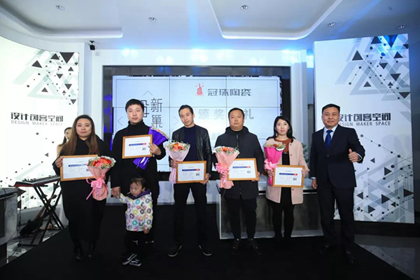 此外,冠珠陶瓷為了回饋各位設計師的支持,還在活動現場為獲獎設計師頒發游學獎。據了解,自冠珠青年設計師俱樂部創建之初就設立了“冠珠青年設計師游學獎”。冠珠青年設計師游學獎,旨在提供與設計名師交流學習的平臺,助力青年設計師成長。2018年共14位冠珠新銳設計師獲獎,現場領導為獲獎設計師頒獎。
