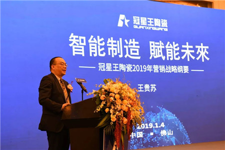 廣東冠星陶瓷企業(yè)營銷總經(jīng)理王貴蘇在會上作出了以《智能制造 賦能未來》的主題演講。王總對2018年經(jīng)濟(jì)環(huán)境、行業(yè)形態(tài)、進(jìn)行了深入淺出的分析,并對冠星王陶瓷取得的佳績表示肯定。面對市場環(huán)境復(fù)雜多變的2019年,王總強(qiáng)調(diào),冠星王陶瓷將從“智造賦能、產(chǎn)品賦能、品牌賦能、展示賦能、行銷賦能”五大方向上進(jìn)行品牌快速提升和戰(zhàn)略升級。