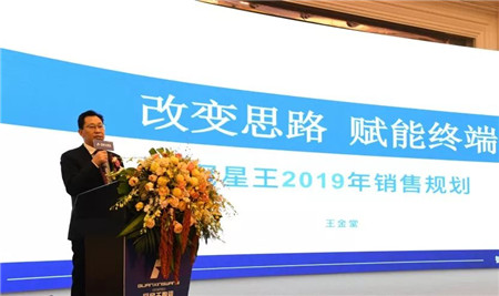 接著,冠星王陶瓷銷售總經(jīng)理王金堂作出了《改變思路 賦能終端》的主題講話。王總提到,2018年冠星王陶瓷終端涌現(xiàn)一批優(yōu)秀的經(jīng)銷商,他們緊跟品牌策略,對店面進(jìn)行全面升級,展現(xiàn)出現(xiàn)代、時尚、簡約的品牌面貌,讓冠星王在市場上保持競爭優(yōu)勢;并對2019年的銷售計劃做了總體性的規(guī)劃,在2019年將利用省會城市的影響力,以大中城市為核心,“區(qū)域中心倉”為突破口,加快搭建銷售網(wǎng)絡(luò)大框架,把冠星王打造成當(dāng)?shù)刂放疲瑤訁^(qū)域經(jīng)銷商共同提升。借助冠星企業(yè)環(huán)保式、花園式工業(yè)園以及智能化倉儲中心的落成,攜手全國經(jīng)銷商朋友共同前行,互利共贏,全力推動冠星王陶瓷品牌邁向新高度。