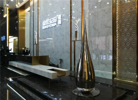 簡單而隆重的K金4.0系列新品啟幕儀式,章云樹先生、章云黨先生、尹虹博士、劉勇先生、林瑩女士、齊世助先生、胡靜宇先生、楊威威先生8位領導嘉賓共同上臺,走到金粉墻后接過金粉,在倒數(shù)3聲后從墻的頂端將金粉緩緩灑落,共同為金絲玉瑪K金瓷磚4.0新品華麗啟幕。金絲玉瑪K金瓷磚4.0新品發(fā)布正式啟幕,它將引領K金裝飾新典范。