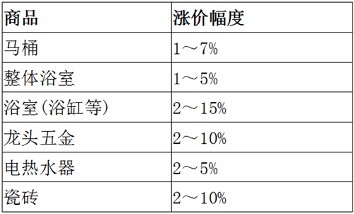 此次漲價涉及驪住多個主要品類,包括馬桶、整體浴室、浴缸、水龍頭、電熱水器、瓷磚等,漲價幅度介乎1-15%。驪住公司將在12月10日在官網公布具體商品的漲價范圍。此次漲價僅針對日本市場,暫未知其他市場會否受到影響。
