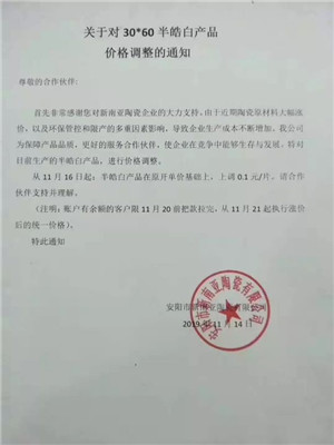 臨近年末,國內陶企開始漲價