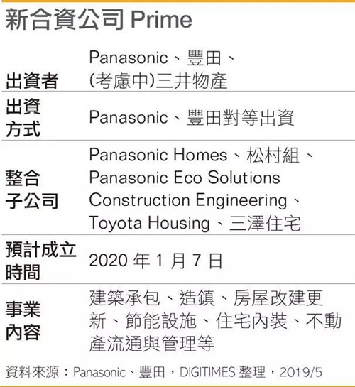 今年5月,松下(Panasonic)、豐田汽車(Toyota Motor)以及建筑公司三澤住宅(Misawa Homes)等宣布,將在住宅事業(yè)領(lǐng)域進(jìn)行合作,透過網(wǎng)絡(luò)整合電動(dòng)車(EV)、自動(dòng)駕駛等車輛新科技,以及住宅服務(wù)、智慧城市等技術(shù),并計(jì)劃于2020年1月合資成立專注建設(shè)智慧城市與住宅的新公司。