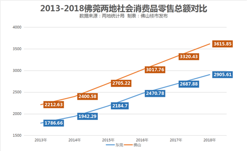 比如,雖然佛山人口少于東莞,但市民消費力更強,且兩地差距越來越大。這既反映出佛山“藏富于民”,也說明城市的商業(yè)配套更加成熟。