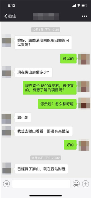 一個是香港粉絲爆料,其在10月向樓市君打聽佛山房價,最終在近期買下獅山某樓盤。