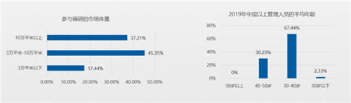 首先,張彩虹介紹此次參與調查的賣場,市場體量大多在3萬-10萬平米以上;人員方面,中層以上管理人員的年齡結構近七成平均年齡在30-40歲之間。