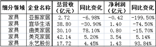 成品家具領(lǐng)域普遍出現(xiàn)利潤負(fù)增長,市場環(huán)境較為嚴(yán)峻。亞振家居、宜華生活前三季度營收、利潤出現(xiàn)雙下滑,同樣利潤負(fù)增長的還有曲美家居。