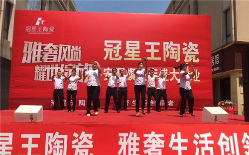 開業當天,精彩紛呈的節目演出、空前鉅惠的購磚優惠,贏得了在場客戶的一致認可。在消費者朋友滿載而歸的同時,安順冠星王陶瓷的盛裝開業也實現了業績和美譽度的雙重提升,如此的開門紅為安順冠星王的再攀高峰立下重要的里程碑。