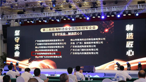 廣東宏陶陶瓷有限公司名列“南海制造業全國隱形冠軍企業”光榮榜