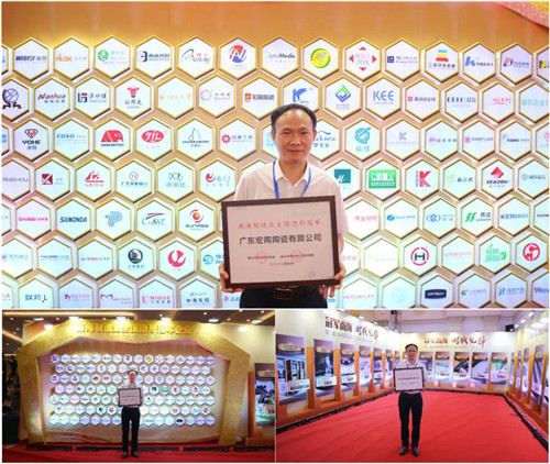 會議對第二批共40家南海制造業全國隱形冠軍企業進行了授牌,這些企業均為制造業細分領域的頭部企業,是一批引領技術前沿、在細分市場“專精特新”的企業群體,其市場占有率、產量或產品銷量等核心數據指標,至少有一項居全國前三,其中不少居全國第一。宏宇集團下屬廣東宏陶陶瓷有限公司名列40家冠軍企業之一,被授予“南海制造業全國隱形冠軍”光榮牌匾!宏宇集團生產總經理助理劉積勝代表企業上臺領牌。