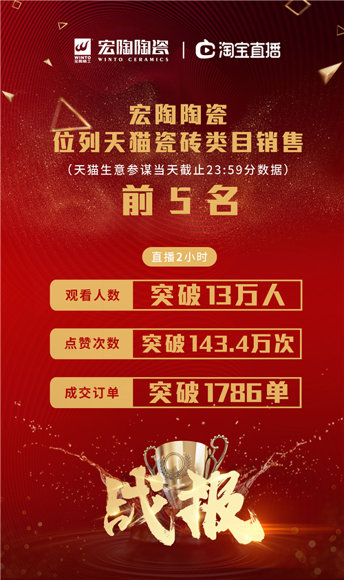 2020年,是需要不斷尋求突破的一年,敢于嘗試、勇于挑戰,才能不斷成長。宏陶陶瓷五月“健康無醛月·非常520”廣東省線上家裝大促活動完成既定目標,收獲頗碩,2020年的宏陶陶瓷敬請期待!