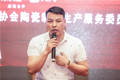 愛因斯坦瓷磚董事長(zhǎng)袁云、設(shè)計(jì)總監(jiān)邵惠波及經(jīng)銷商代表出席本次會(huì)議