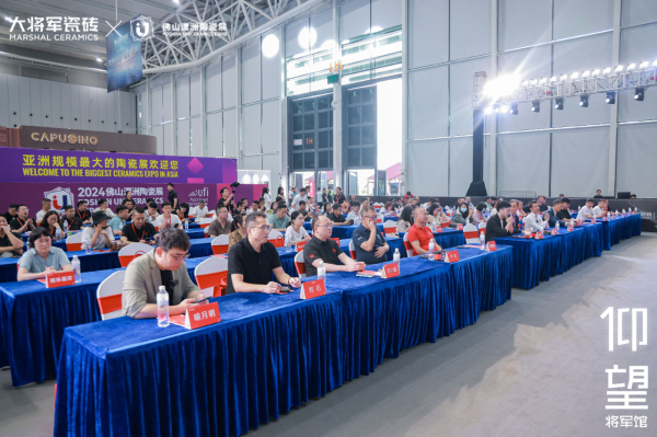 會議伊始,陶城報社長、佛山潭洲陶瓷展總經理李新良、佛山市陶瓷行業協會秘書長尹虹發表致辭。發言中,他們對大將軍瓷磚表示了充分的肯定與美好祝愿;仰望就是向上,品牌向上,品質向上。
