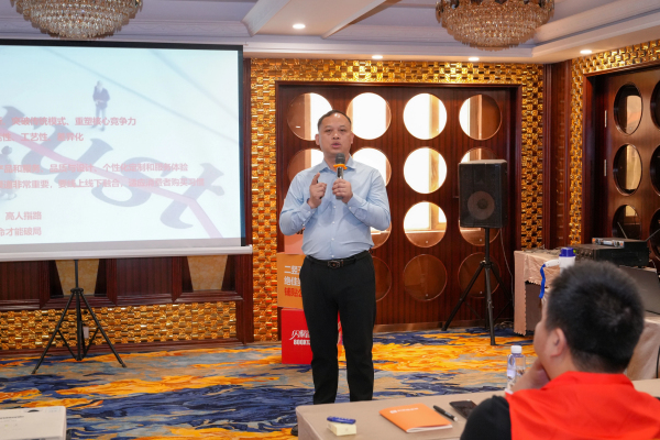 會議伊始,由利家居汕頭經(jīng)銷商康澤彬率先致辭。他對品牌總部領(lǐng)導的蒞臨表示誠摯感謝,同時高度贊揚了品牌總部對終端賦能工作的重視。他期望能與在場的各位經(jīng)銷商伙伴開展深度交流,彼此分享門店經(jīng)營的心得與經(jīng)驗,相互交流學習,共同進步。
