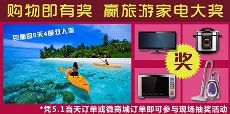 Three重頭戲要來了,只要你在中國陶瓷城微商城或5月1日現場下單,就能參與超級抽獎活動,贏取巴厘島5天4晚雙人出境游及家電大獎!!