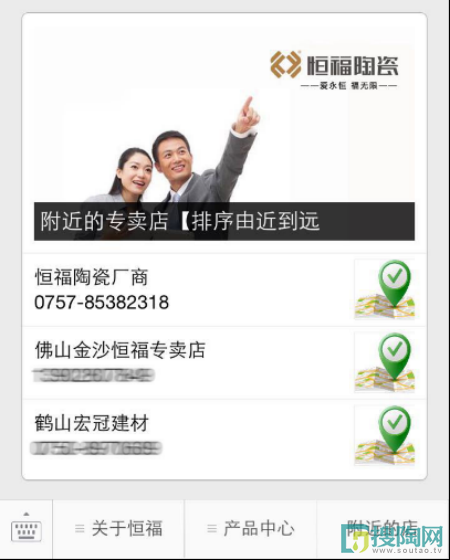 恒福微網站的上線,不僅對本品牌打造的意義重大,消費者只要關注恒福的微信號,就能瀏覽恒福的微網站,同時也是恒福在移動營銷方面的創新。恒福微網站的優勢:1、隨時隨地向消費者展示恒福陶瓷的影響力;2、附近的店功能,消費者可通過“附近的店”上的導航功能,快速找到當地的恒福專賣店;3、隨時隨地查看恒福各方面的詳細信息,方便快捷;4、貼心的導購功能,具有恒福全系列的產品及產品應用案例,方便選擇。