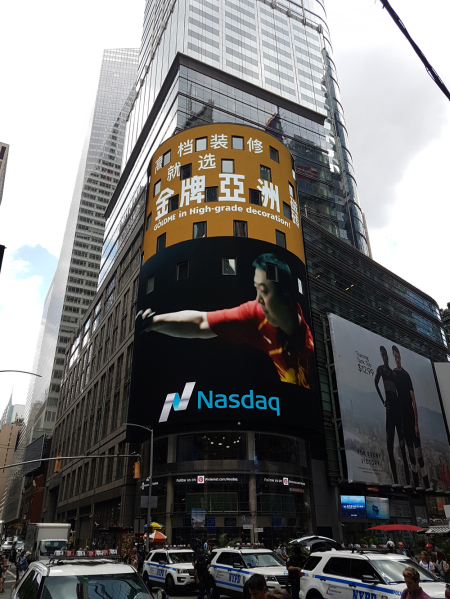 金牌亞洲磁磚“霸屏”美國(guó)紐約時(shí)代廣場(chǎng)