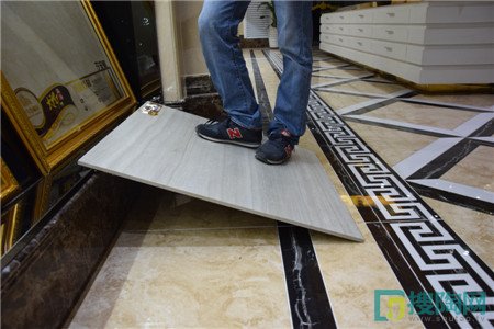 瓷磚的抗壓性指的是瓷磚的破壞程度。抗壓性能差,容易導致瓷磚在使用時出現開裂、斷裂等現象,也影響美觀。測評員先把瓷磚以斜放的方式放置,然后找來了一位成年男子,站在瓷磚上面,瓷磚也沒有出現開裂的現象。說明通體大理石瓷磚的抗壓性非常好。具有良好的物化性能。