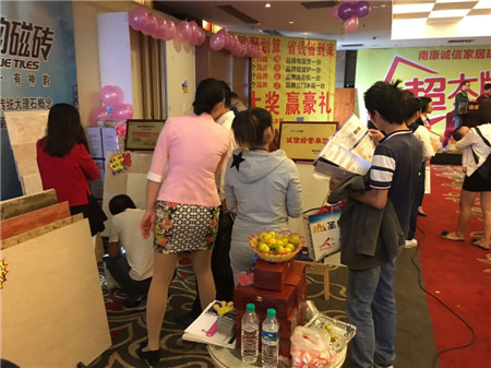 活動全場人氣火爆,神韻磁磚展位區眾業主競相下單、參與抽大獎,神韻磁磚充分展現了其品牌魅力,貼近消費者需求,給現場營造了一個輕松愉快的購物氛圍。最熱烈的要數砍價環節和砸金蛋環節,現場驚喜連連,更是把氣氛推向高潮,眾多業主表示神韻磁磚不僅產品品質過硬,還誠意滿滿,很是滿意此次的購物體驗。