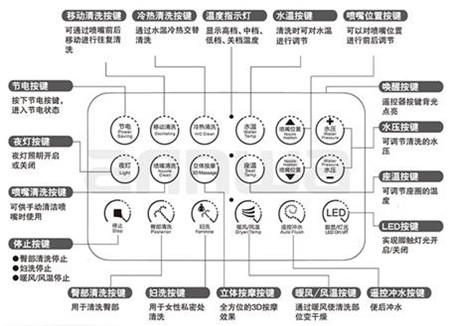 安華衛(wèi)浴智能馬桶aB13303不但擁有一般智能馬桶的所有功能,還有擁有上面提到的腳觸沖水技術(shù)。因?yàn)橛玫氖请[藏式水箱,讓外形顯得更加小巧精致討人喜歡。搭配專門設(shè)計(jì)的觸摸式遙控器,按鍵涵蓋了智能馬桶的全部使用功能,超大按鍵尺寸,時(shí)尚簡(jiǎn)潔的指示圖標(biāo),大字符中文說(shuō)明,按鍵特設(shè)背光燈,選擇對(duì)應(yīng)功能時(shí)按鍵背光燈亮起,更方便老年人使用。側(cè)鍵包含電源鍵、智能清洗鍵、智能婦洗鍵和兩個(gè)指示燈,位于頂部的開(kāi)蓋按鍵方便。選擇一款面面俱到的aB13303智能馬桶,讓家人體會(huì)到真正的健康與舒適,貼心保護(hù)家人健康。