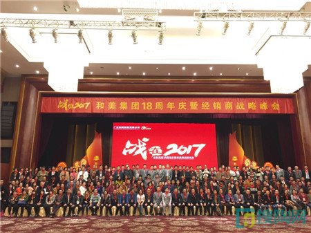 2017年1月1日晚,和美集團18周年慶暨經銷商戰略峰會在佛山三水綠湖溫泉度假酒店圓滿落幕,和美集團董事長冼偉昌、銷售總經理羅坡文、旗下各品牌總經理等公司領導以及來自全國各地的經銷商朋友共600多人相聚在一起,共同慶祝這一盛會。