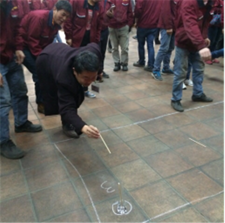 再說“比比誰的眼力好”項(xiàng)目,算是全場難度最高的游戲了,參賽者站在花瓶的一側(cè)約一米的距離,參賽者單腳抬起,瞄準(zhǔn)直徑1厘米的瓶口,向瓶口丟出手中的筷子。這瓶口真是細(xì),但也難不倒大家,有些員工還幫忙著抓住前一位參賽者的腿,防止跌倒,兩人配合的姿態(tài),甚似跳著冰上“雙人芭蕾舞”呢。
