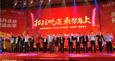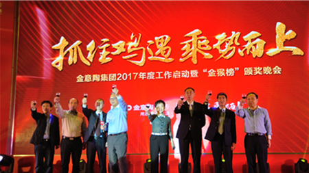 2017年2月20日,以“管理變革·乘勢而上”為主題的2017金意陶集團年度工作強勢開局啟動大會隆重舉行,金意陶全體同仁與到場嘉賓歡聚一堂,載歌載舞,共同回顧過去一年奮力拼搏的點點滴滴,展望金意陶未來發展的宏偉藍圖!