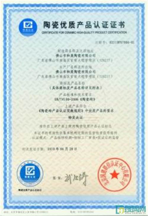 在產品標準方面,陶城瓷磚建立了比歐洲標準、國家標準更為嚴格的企業內控標準,嚴格控制和管理從研發到成品的整個生產制作過程,原材料選取全球頂級的優質原材料,如美國美國福祿公司墨水、土耳其石粉、意大利石英晶體等;生產上建立了一整套精密的制造體系,每一片磚都經過許多道主工序和微工序的精雕細琢。因此,陶城的產品具有高硬度、低吸水、強耐磨、花色全、款式多、強防污,高亮度,超平整等優點,成為了行業中品質瓷磚的領跑者。2010年,陶城瓷磚成為國內首批通過“陶瓷優質產品認證”的23家企業之一。該陶瓷優質產品認證體現了陶城瓷磚高起點,高標準的優質“準則”,為陶城提升產品質量和建立質量標桿提供了第三方技術依據。