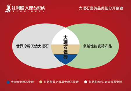 2015年10月份,紅帆船大理石瓷磚在行業首次提出“大理石瓷磚品類細分圖”,從工藝、技術和檔次方面對行業大理石瓷磚進行了劃分,正式成為“大理石瓷磚品類細分開創者”。