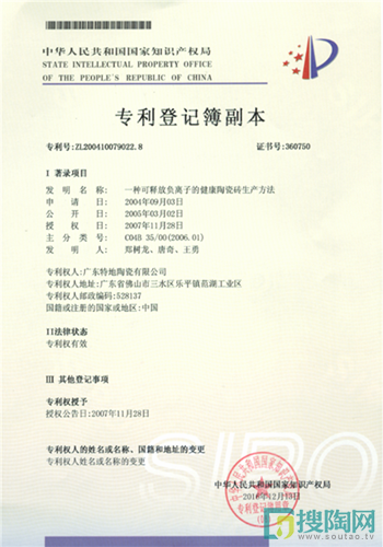 特地堅持原創,注重精品,在十余年的發展中,特地一直在自主創新的研發道路上不懈努力。2004年,特地把健康環保融入瓷磚,與中山大學共同研發出負離子瓷磚。2007年,特地·負離子瓷磚榮獲國家發明專利證書。2016年,特地陶瓷品牌正式升級為“特地·負離子瓷磚”。